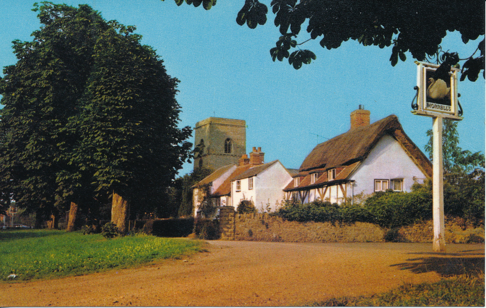 Village Green and Swan Inn-sign - Unused postcard Pub. Dixon-Lotus - 1950s? (Ref: PC_SC0017)