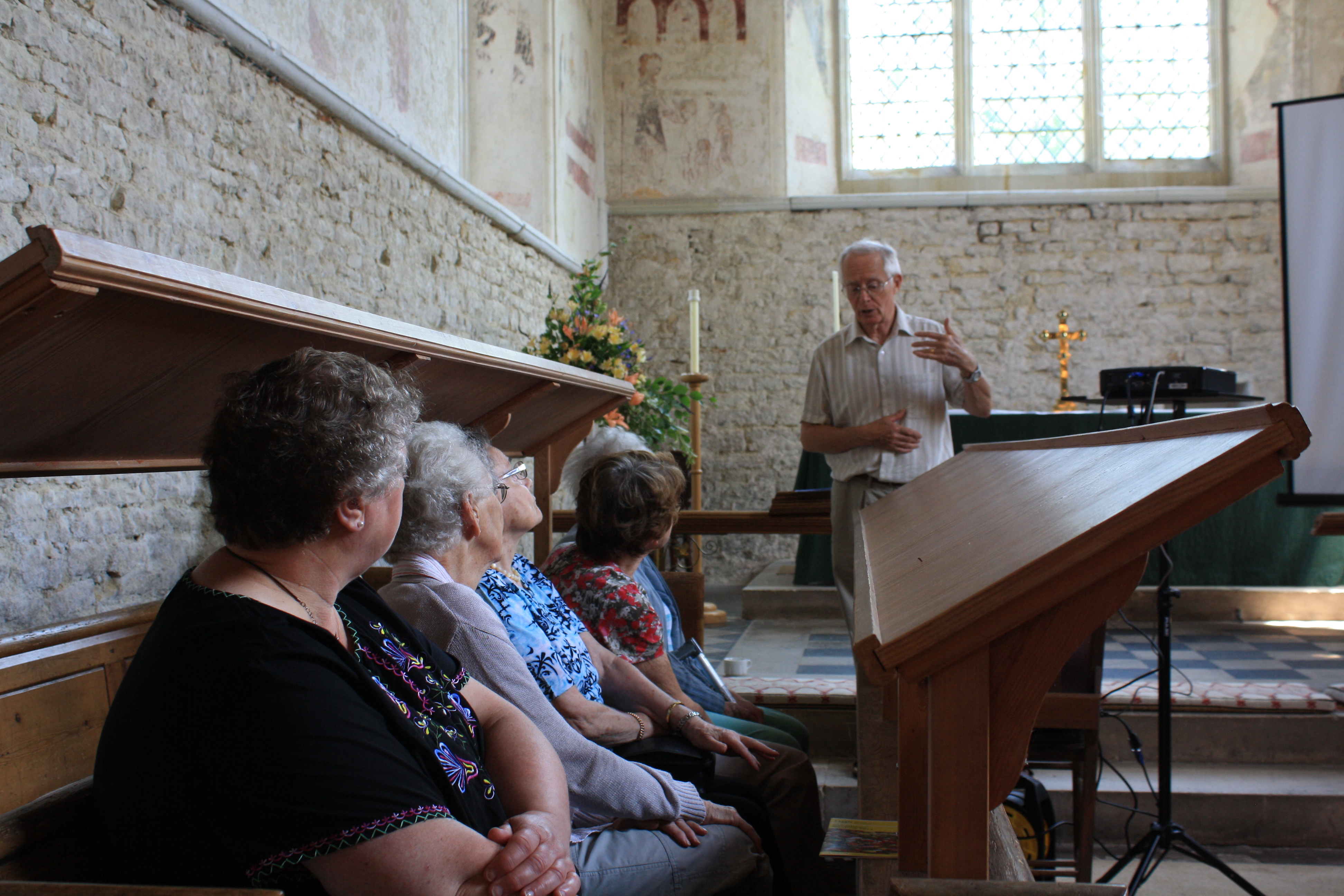 At St Mary's Church the group listened to a fascinating talk by Bob Heath-Whyte about the stunning medieval wall-paintings in the chancel.