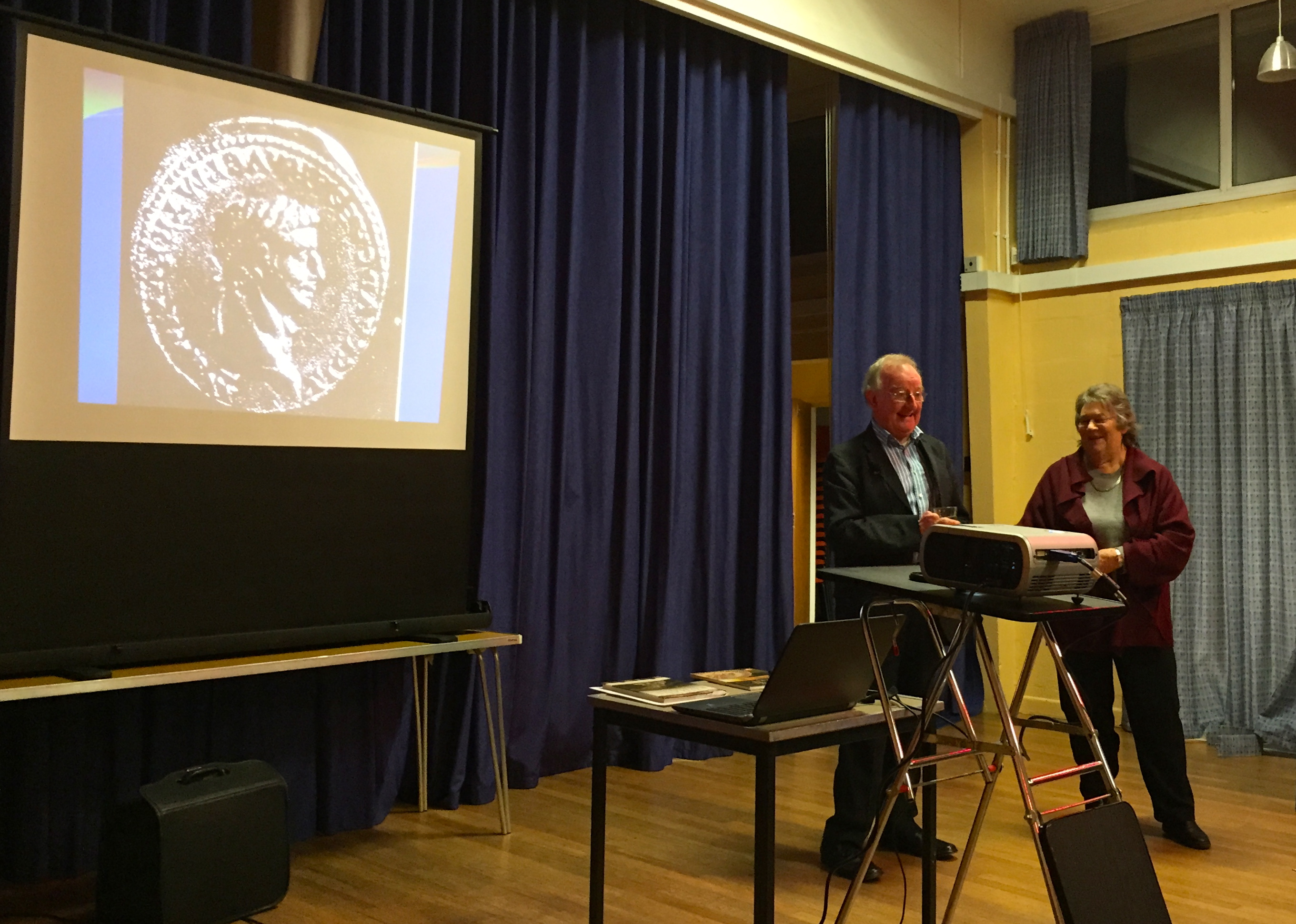 In his talk Bill King gave an outline of Roman influences in Britain over a period of some 400 years, from Julius Caesar's first campaigns in 55 and 54 BC, through the period of conquest, occupation and colonisation of Britain starting from 43 AD until Roman officials finally left Britain in about 410 AD. He also described how the Romans came to create important settlements in our region, including significant ones in Sutton Courtenay, Appleford, Abingdon and Dorchester, to name just a few in the immediate vicinity.